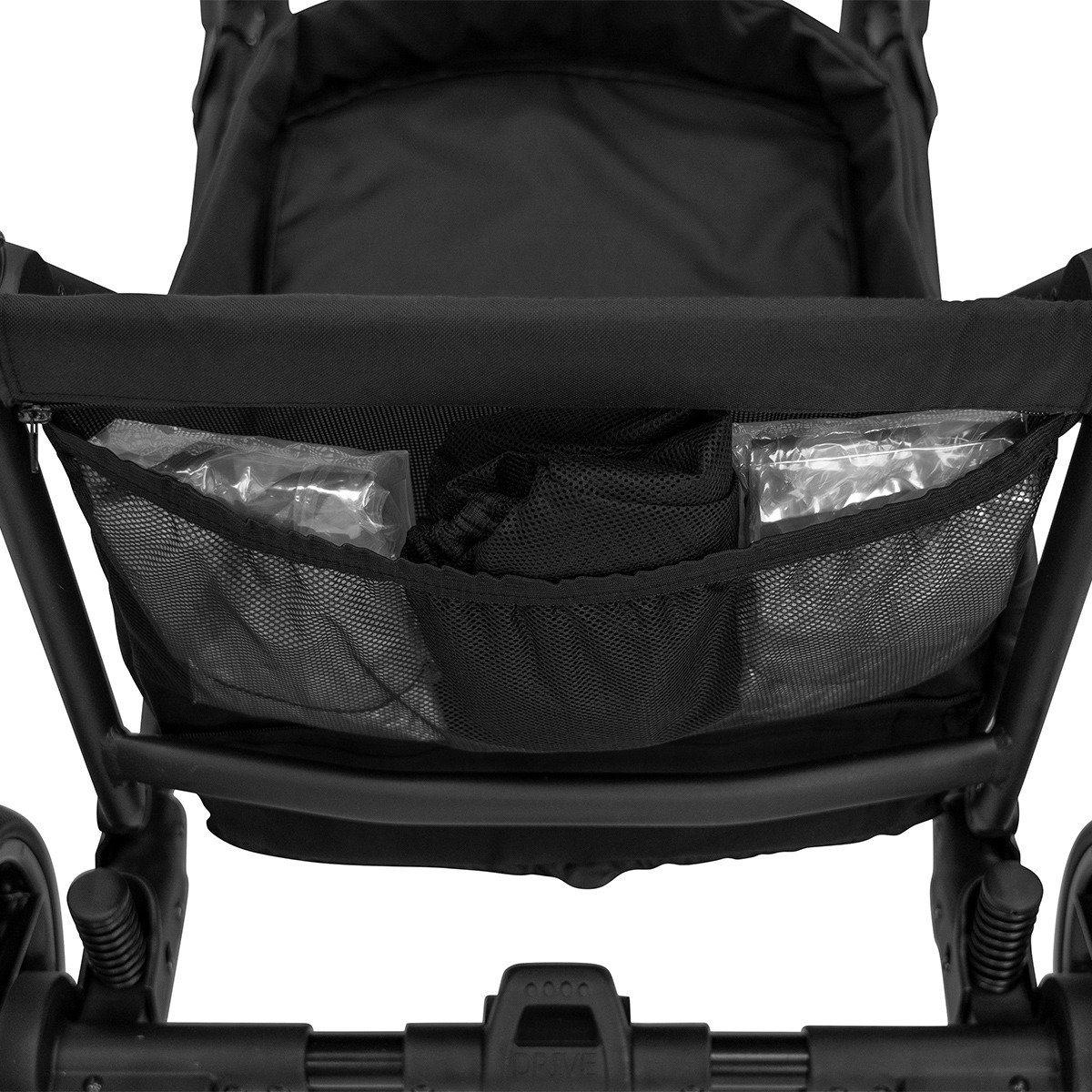 El cochecito está equipado con una gran cesta para guardar todo lo esencial para la familia. De tamaño cómodo, permite meter la compra o los artículos que necesites.