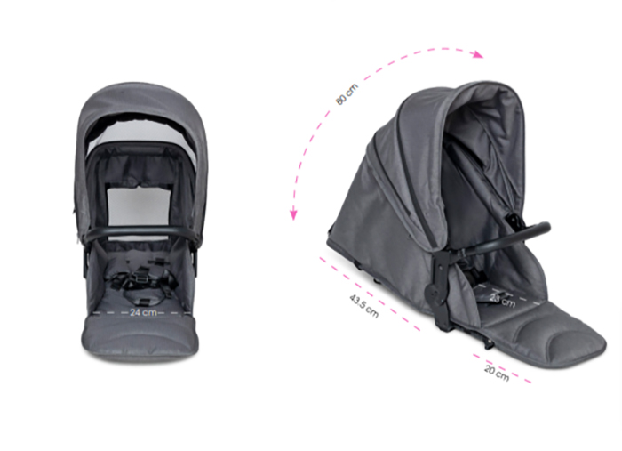 – Capota extensible hasta 80 cm con tejido repelente al agua y protección UPF50+