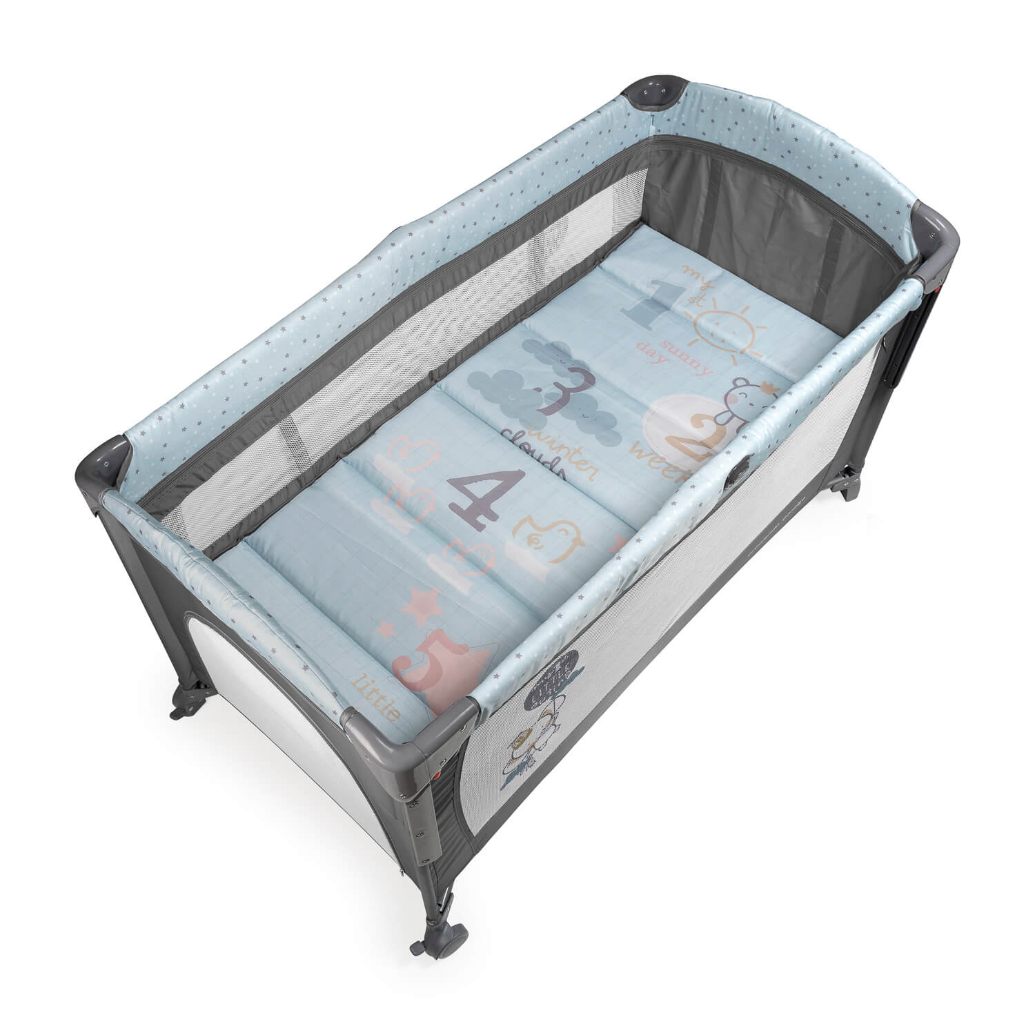 La cuna de viaje Complet incorpora la posibilidad de hacerse colecho, gracias a que uno de sus laterales se puede agachar con un novedoso sistema de abatimiento lateral.