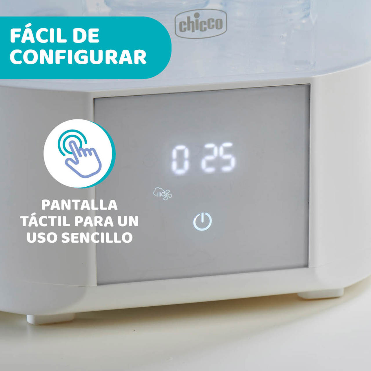 El esterilizador eléctrico con secador 2 en 1 de Chicco es un esterilizador de vapor modular que elimina hasta el 99,9% los gérmenes domésticos y además permite secar los biberones y pequeños objetos de forma rápida y eficaz.