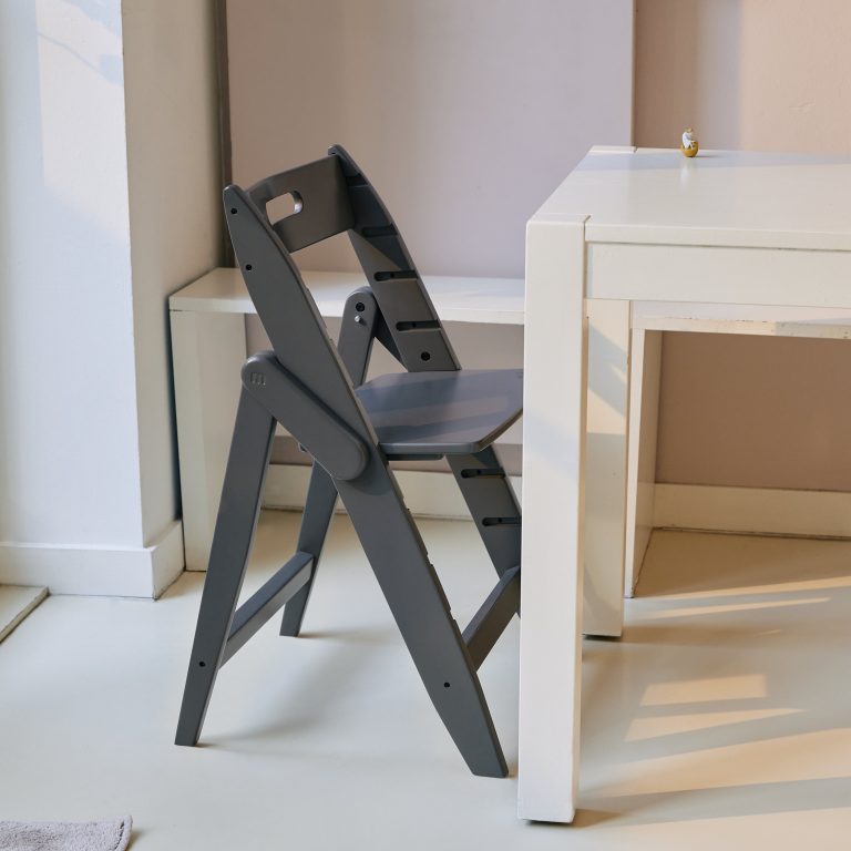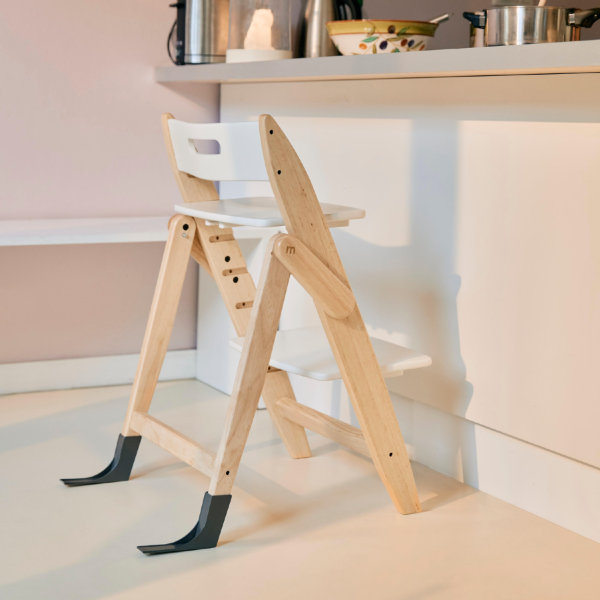 La nueva trona de madera evolutiva plegable Yippy de Moji se puede montar sin herramientas y es fácil de usar a partir de los 6 meses (con opción a utilizarla desde el nacimiento junto con el Newborn set -no incluido).