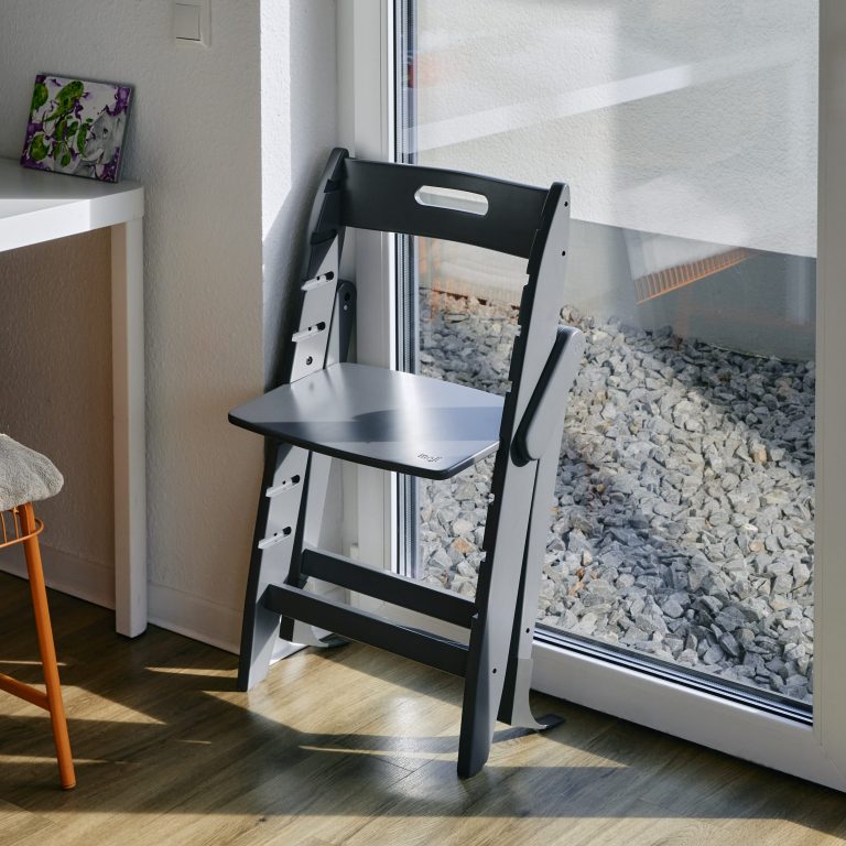 Gracias a la práctica función de plegado y a su bajo peso, puedes llevar la trona Yippy fácilmente contigo en el coche para visitar a los abuelos o a unos amigos. La trona se puede configurar de nuevo en unos segundos. El asa en el respaldo de la trona también facilita el transporte.